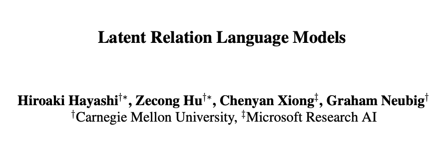 Hayashi等人在其工作中为自然语言生成任务(以知识图谱为条件)定义了一个隐关系语言模型(Latent Relation Language Models,LRLMs)。知识图谱对关系、实体和关系的表面形式(surface forms)/同义词等有益,且能够在生成token时被融入到概率分布中。也就是说,在每一步中,模型要么从词汇表中提取一个单词,要么使用已知的关系。