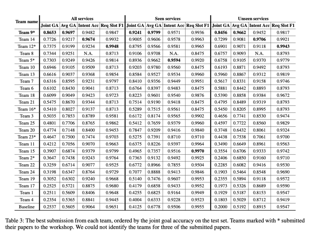 事实上,这个数据集如此之大,以至于没有人能够穷尽其中可能存在的槽值,或者保证其测试集能够覆盖所有可能的服务/槽/值组合数据。