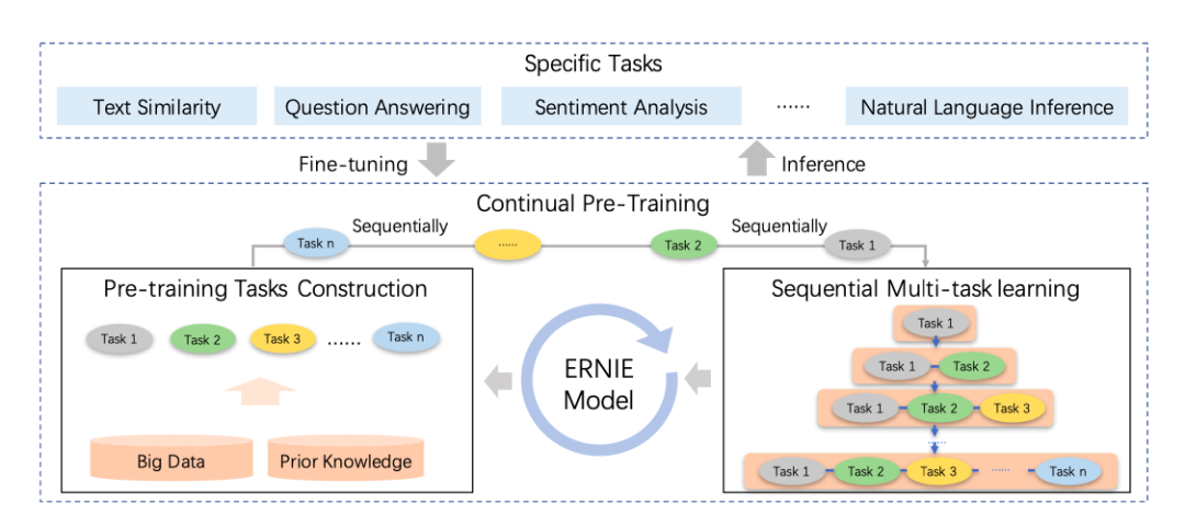 百度在相似性融合方面做了不少工作,他们在本届AAAI上介绍了 ERNIE 2.0。这是一个整合外部知识的扩展方法,与ERNIE 1.0相比,它可以捕获更多的词汇、语法和语义信息。