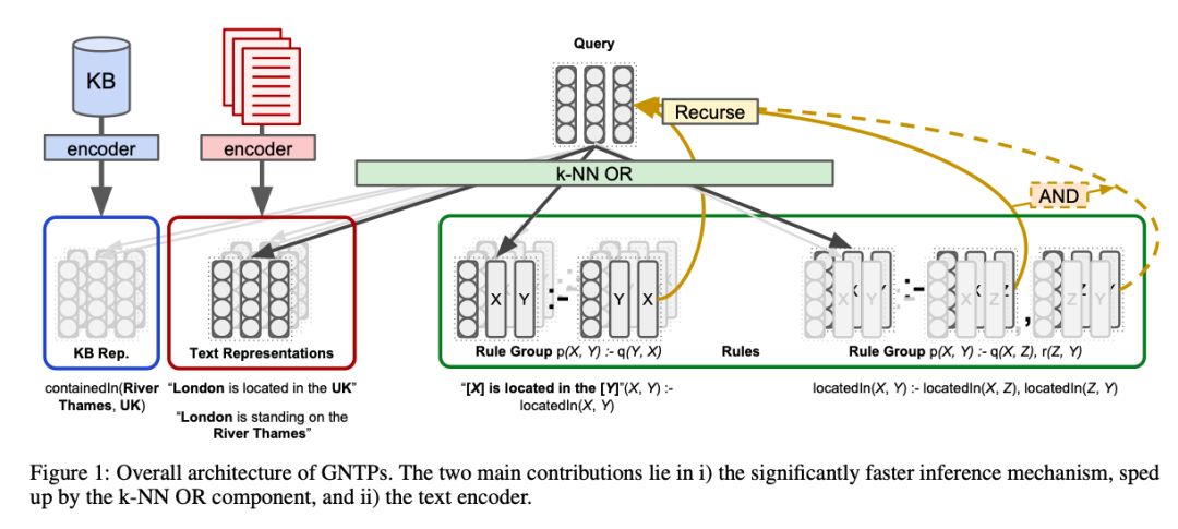 为了解决这一问题,论文作者推导出了一个贪心的邻近算法(kNN)策略来选择能够最大化证明分数的事实,从而GNTPs 更具可扩展性得多。同时,除了 (s,p,o) 三元组外,作者还可以用自然语言来表示规则,例如“伦敦坐落于英国”。