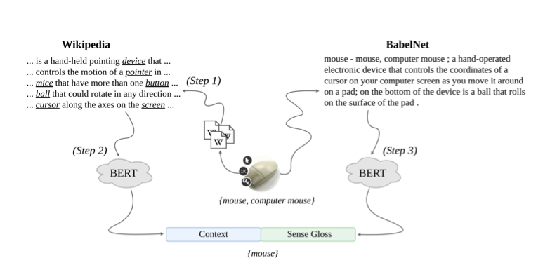 Scarlini等人将BERT与语义网络BabelNet和NASARI一起应用在他们的SensEmBERT模型中,这个模型能够在多种语言中进行词义歧义消除和词义表示。