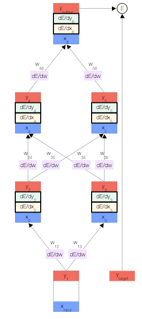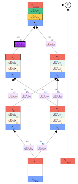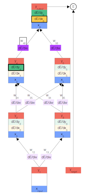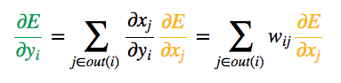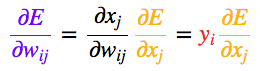 一旦得出相对于某节点的总输入的误差导数,我们便可以得出相对于进入该节点的权重的误差导数。