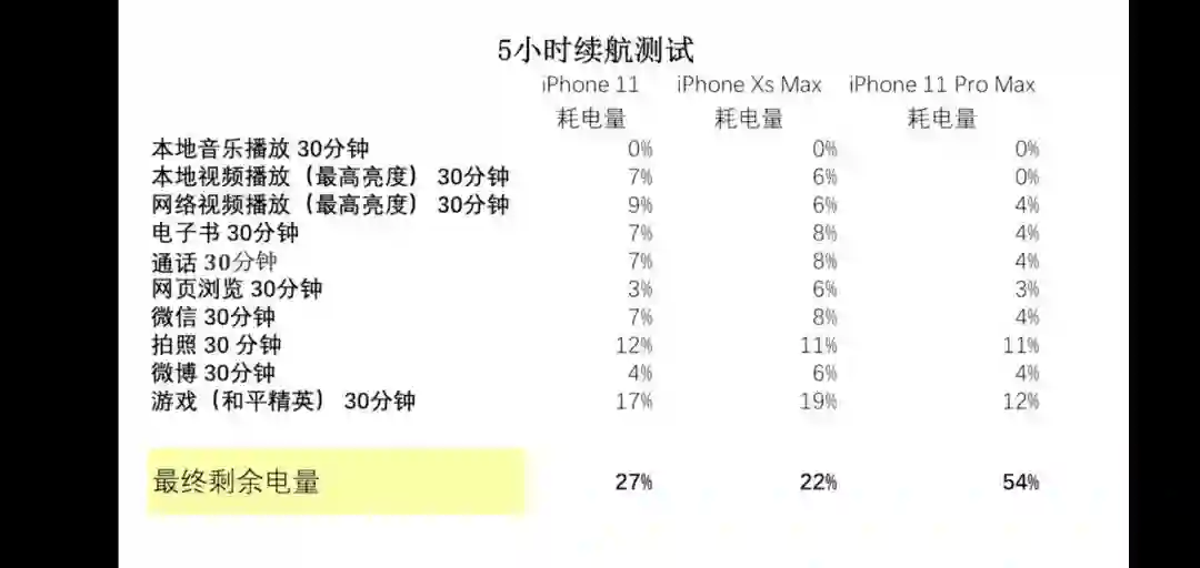 图:iPhone 11 Pro Max5 小时续航测试
