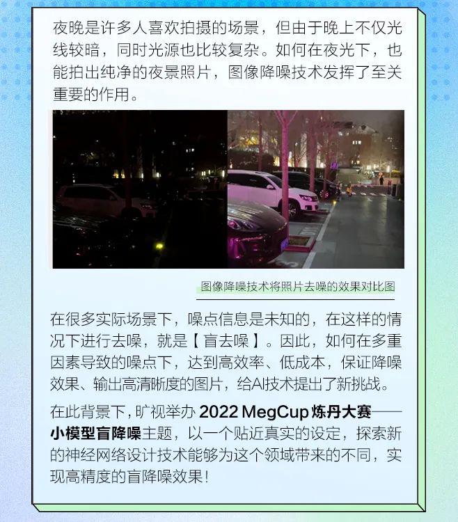 10万奖金!探索图像盲降噪新方式,旷视2022 MegCup炼丹大赛等你来战