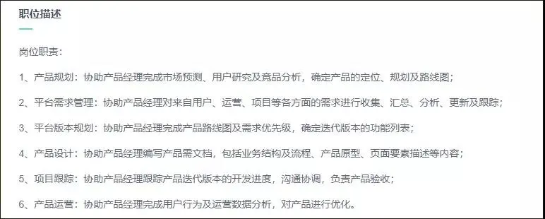 比如,这是Boss直聘上一份相对完备的产品助理的JD: