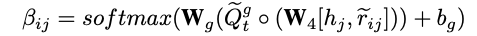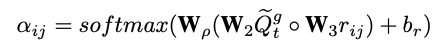 基于问题新表示Qgt的引导,计算场景图中每个关系的注意力: