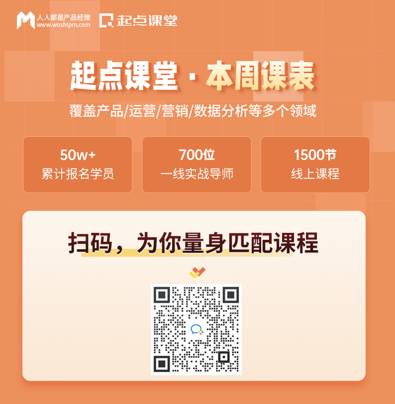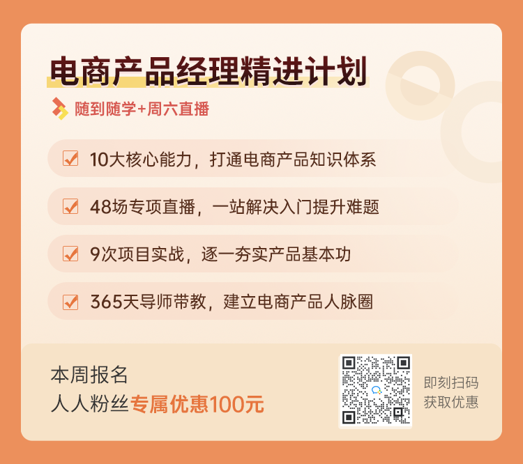为此,起点课堂发起了《电商产品经理精进计划》,帮助0-3岁产品经理系统构建电商产品核心能力体系,告别野路子,快速入门,成为有思考、有策略的高薪电商产品经理!