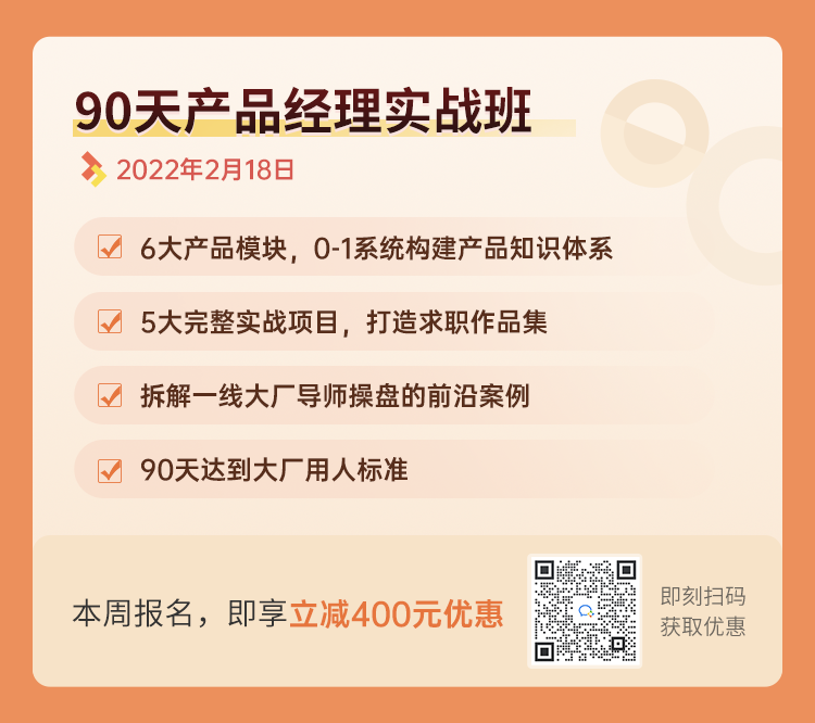 基于此,起点课堂联合多位来自BAT等产品领域的专业导师,借助他们丰富的实战及教学经验,做出了一个面向初、中阶产品经理的一门体系化的入门课程《90天产品经理实战班》。