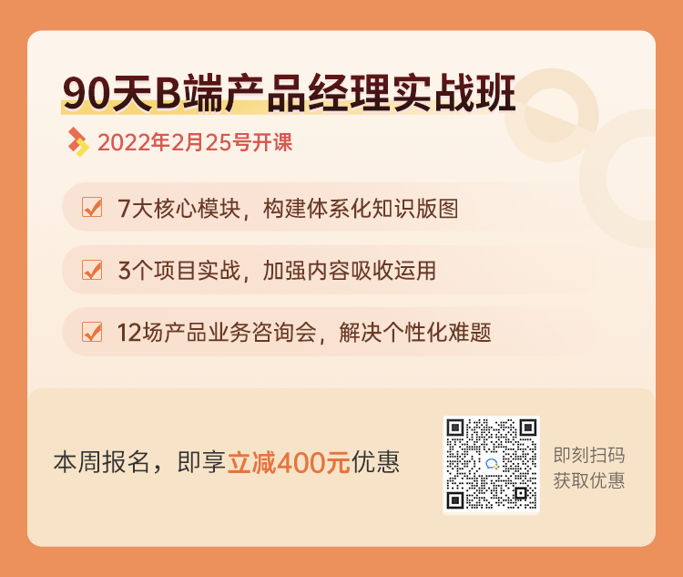 基于此,向你推荐腾讯课堂&起点课堂联合打造了《90天B端产品经理实战班》直播课程,萃取行业头部专家经验,多位BAT大厂10年+经验B端产品专家直播亲授,帮助大家系统掌握B端产品建设的核心方法论,实现专业技能提升。