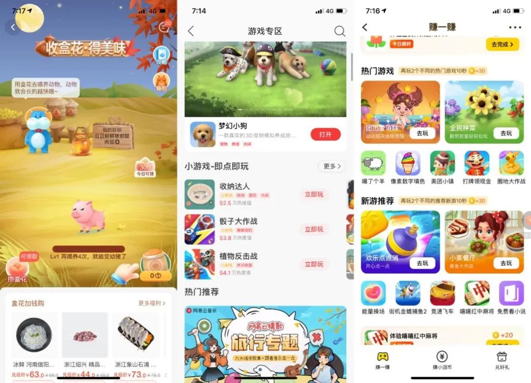 支付宝的蚂蚁森林也是一种小游戏,包括后来衍生的芭芭农场,以及美团的小美餐厅装修版。