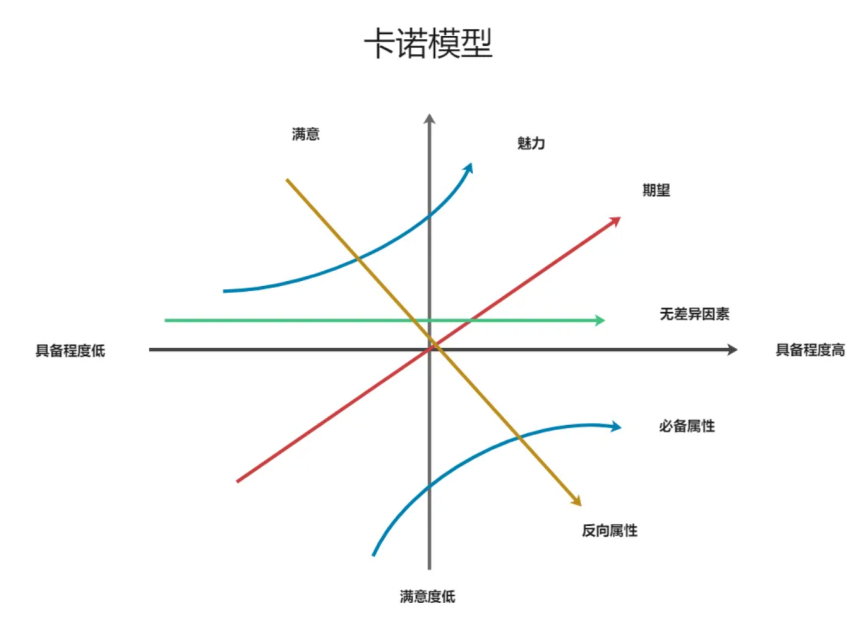 既然需要寻找跟小游戏高度重叠的产品定义以及自然的交互方式,不要干扰到用户的核心产品体验,在卡诺模型中寻找魅力因素和期望因素。