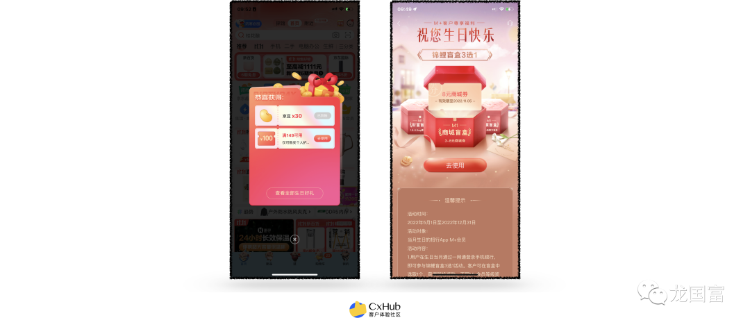 这是我生日的时候,京东 App 和招行掌上生活 App 给我推送的优惠。
