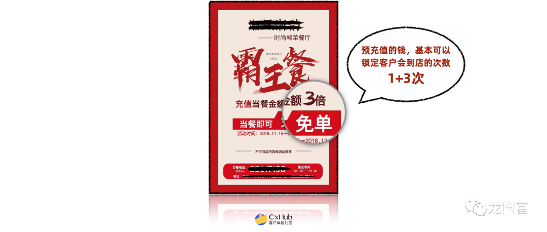 咋听之下,这个慷慨无比的免单优惠,其实是通过预充值 3-4 倍的做法,核心目的就是为了让客户能够来店次数,可以达到「客户粘性」形成的次数。