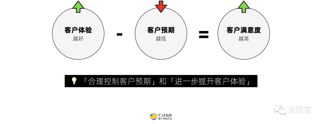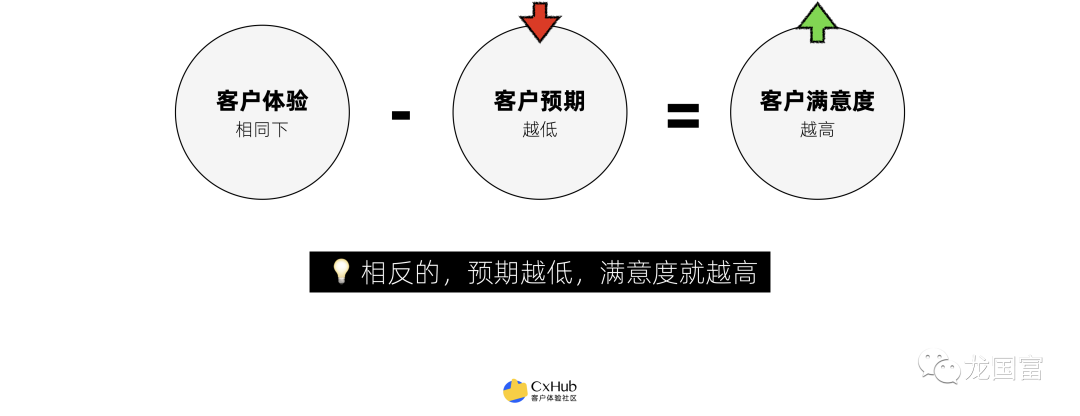 客户满意度的内在逻辑是:客户在相同的体验下,预期越高,满意度就会越低;相反地,预期越低,满意度就会越高。