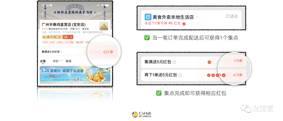 获取红包的方式,也是让你在一定的时间周期内,完成 3~5 次的下单集点,集满就可以拿到红包,在下单的时候享受优惠。