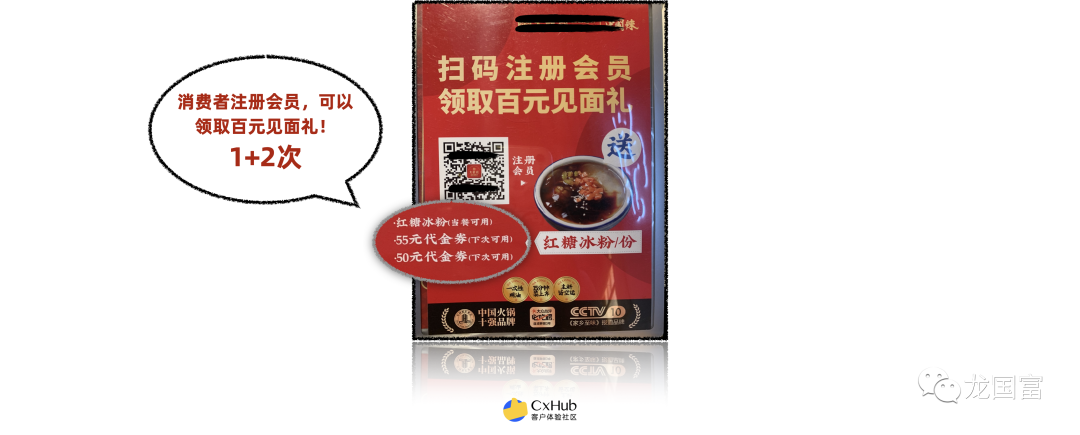 这家餐厅则是以注册会员赠送 2 张代金券的方式~ 消费者下次来吃饭的时候可以使用代金券,如此一来,也可以吸引顾客消费达到 3 次的频次。