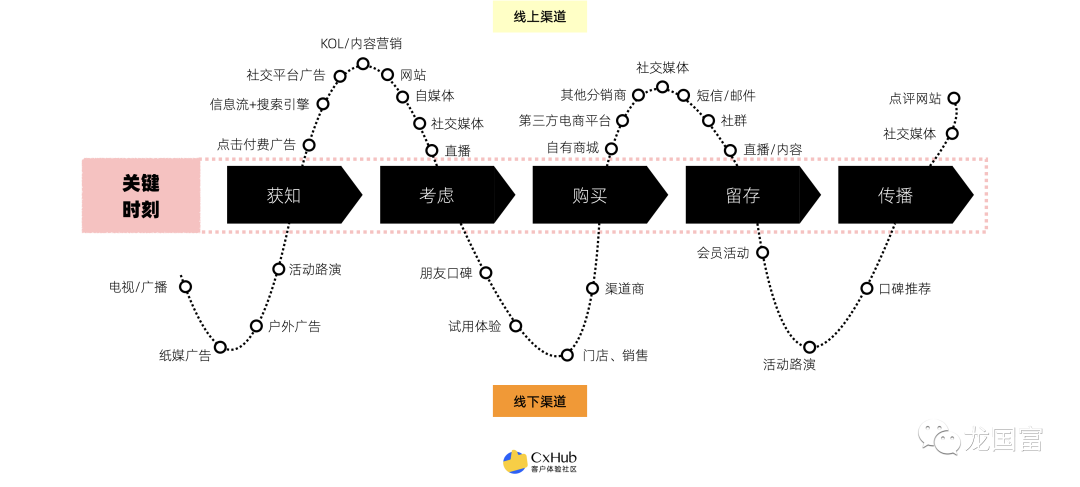 至于触达的节点,就可以在客户的旅程的触点进行寻找。通过梳理线上&线下的接触点,找到这些接触点与客户之间的关系,并盘点是不是匹配客户的关键时刻。