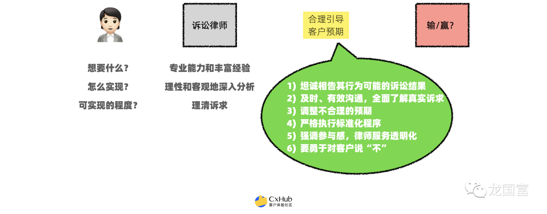 这个案例对于大家来说会比较陌生一点,就是找律师打官司。那对于客户来说,在案件中他的预期也只有一个字:赢。