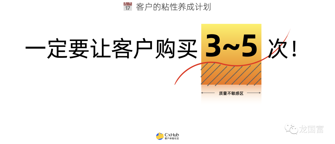 即在第 5 次购买时,客户粘性就会形成。所以,一定要让客户购买 3~5 次。