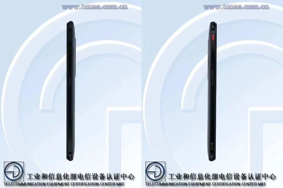 不难发现,红魔游戏手机 7 延续了红魔系列的设计风格,机身右侧的顶部和底部带有超声波的虚拟肩键设计。红魔游戏手机 7 型号为 NX679J。从入网的参数来看,红魔游戏手机 7 有绿、黑、红蓝渐变 3 种配色,支持屏下指纹识别。