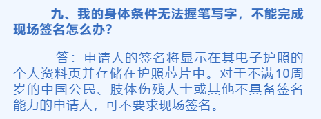 10周岁以上(包括10周岁)的申请人护照必须由本人签名;任何情况下都不允许未成年申请者的父母/法定监护人代替其在护照签名页签名。