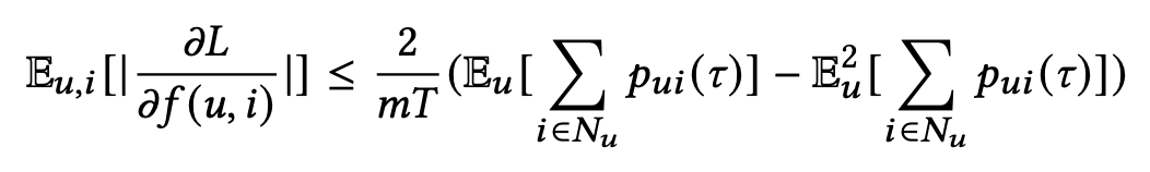 在复杂的计算(用户-物品相互影响),因此我们采用一个估计的方式进行近似计算。首先我们提出一个此目标满足的上界:
