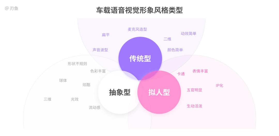 车载语音视觉形象风格由传统型向抽象型/拟人型演化。