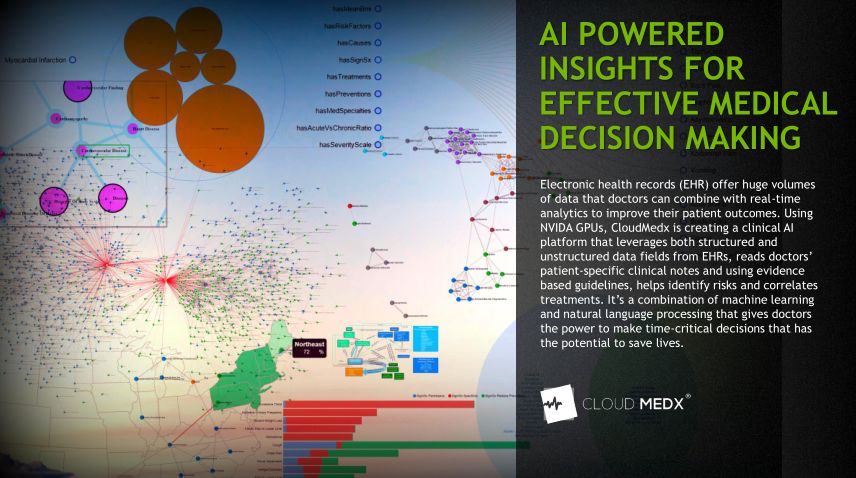 第三个也是PathAI做的,通过热力图以及药理的图片,去帮助医生更好的观测现象。最后一个是CLOUD MEDX,他们拿到了很多医疗记录,通过这些医疗的记录,实时分析病人的信息,同时通过真实的病例数据和实验数据,做健康诊断的推荐,从而帮助医生更好的做诊断,并合理进行药物的配发。