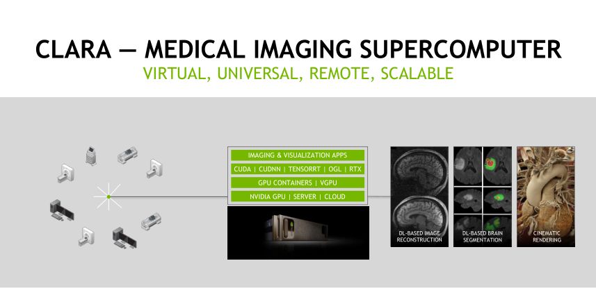 2018年NVIDIA发起了Project Clara,它的名称来源于红十字会的创立人,他的名字就是Clara 。我们希望通过Clara项目 ,帮助医疗行业利用NVIDIA GPU技术,改善人们的生活。