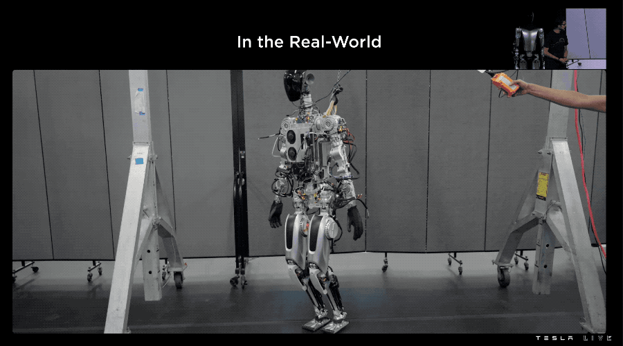 最终特斯拉擎天柱也像波士顿动力Atlus一样,反复训练,甚至适应了人类干扰后才学会在步行中保持稳定。
