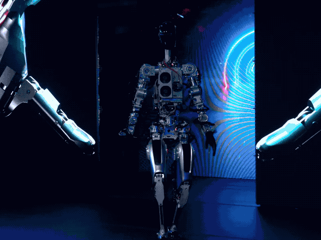 马斯克只用3分钟简短热场,人形机器人擎天柱 (Optimus)直接登台亮相。