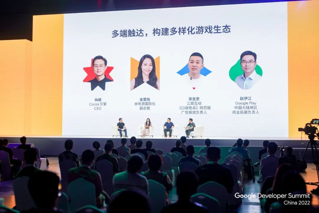 在《多端触达,构建多样化游戏生态》论坛中,来自成功游戏出海企业的合作伙伴们与 Google Play 中国大陆地区商业拓展负责人赵伊江交流探讨,如何采取“多端触达”策略以分析游戏用户行为特点,促进业务变现,合理化技术投入和获取更多用户。