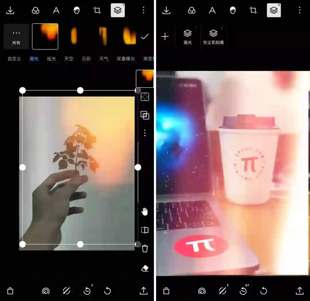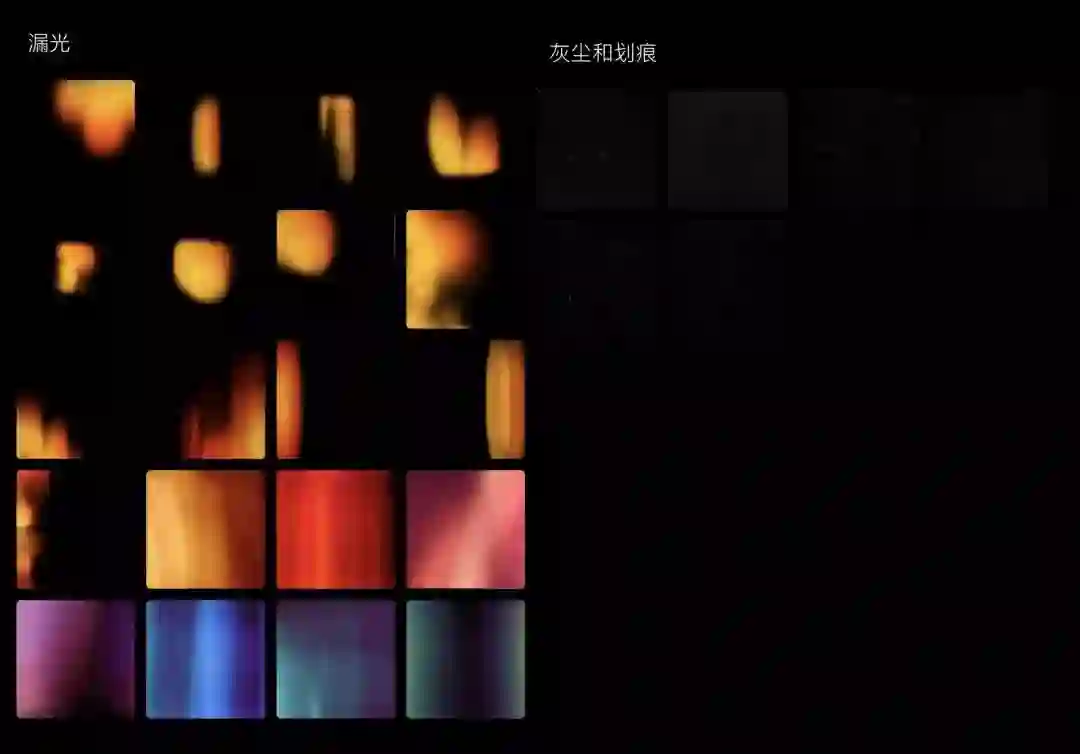 最后,泼辣修图内置的素材还有胶片摄影特有的漏光以及划痕特效,相信这些特效大家都比较熟悉,所以就不详细介绍了。而如果你阅读过我之前分享的 废片拯救指南 的话,你就会知道漏光和划痕也可以是拯救废片的小技巧。