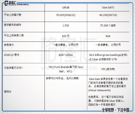 由于Uber EATS来势汹汹,成为GRUB的劲敌,所以下面将GRUB与UberEATS其他方面做比较:
