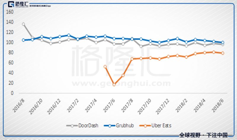 Grubhub Inc (以下简称GRUB)目前为美国最大的在线餐饮订购&外送服务平台, 但以开发行动应用程序链接乘客和司机的Uber(优步)来势汹汹, 借着其原来的商业模式, 积极切入在线餐饮订购与外送服务, 在市占率上紧追着GRUB。尽管目前美国市场仍属于蓝海市场,但未来随着市场渗透率上升(2017年为5.4% ),以及中国相关竞争经验,投资人要紧盯杀价竞争或补贴战的发生机率。