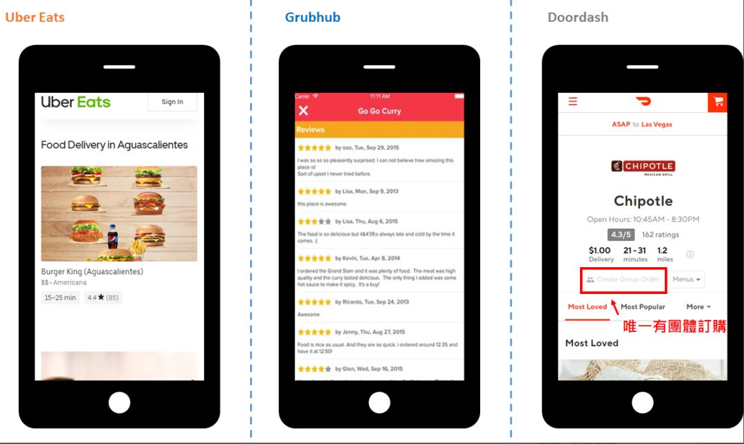 图十七、GRUB与UberEATS比较;