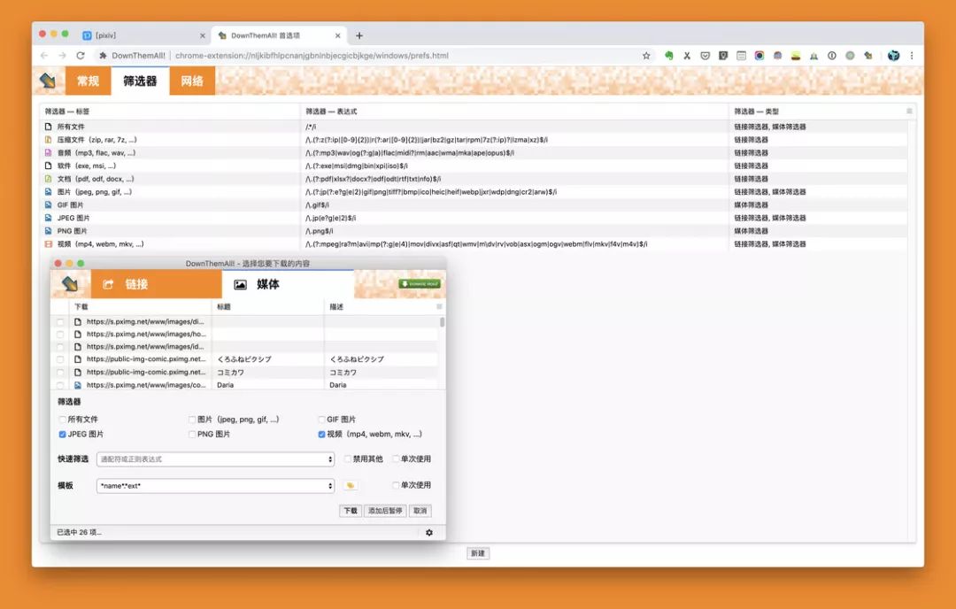 DownThemAll! 是 Firefox 平台的老牌下载增强扩展,近期移植到了 Chrome 上。