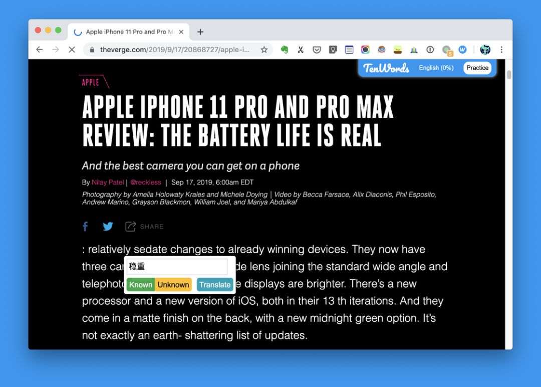 我曾经介绍过不少划词翻译扩展,而 TenWords 可能是最特别的那个。