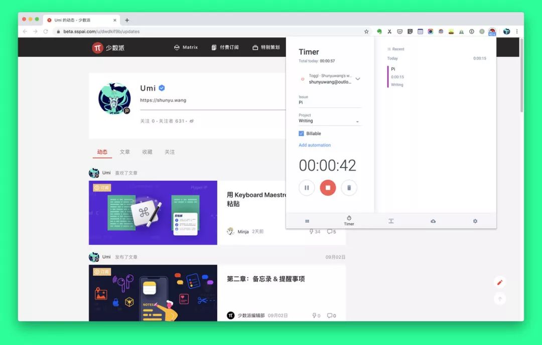 Worklog Tracker 就是一款相当出色的时间记录扩展,它支持在本地创建并追踪工作动态,自动同步至 Toggl、Jira、Keen 和 Yandex.Tracker 等主流服务。