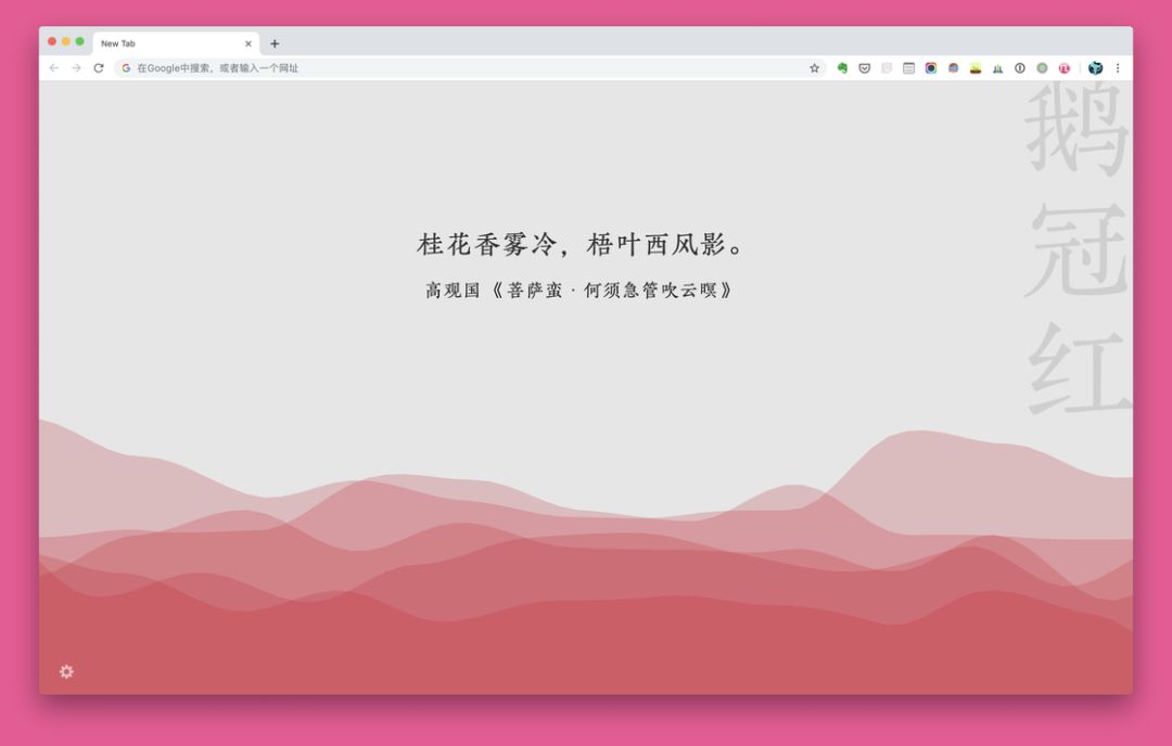 而几枝这款扩展,就会在你每次打开新标签页时展示一句经典古诗词,配合层叠涌动的波浪或气泡背景,婉约如江南山水,让你的 Chrome 与众不同。