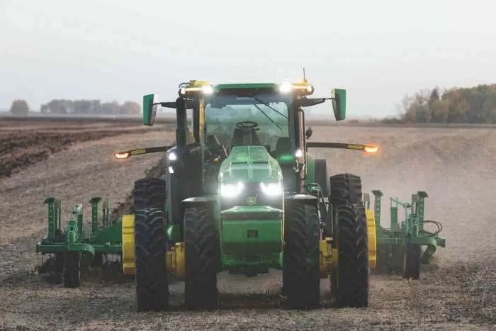 在刚刚结束的CES上,北美农业机械巨头约翰迪尔展示了其第一台自动驾驶拖拉机8R。可以 24/7 全天候运行,每 8-10 小时加油一次。12个立体摄像头可以实现 360 度障碍物检测和距离计算,自动驾驶拖拉机通过不断检查相对于地理围栏的位置,确保它在预期的位置运行,并且精确度小于 1英寸,可以在不接触方向盘的情况下精确播种、以及收获种子。