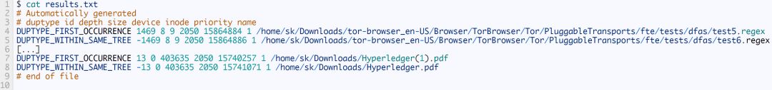 通过检查 results.txt 文件,你可以很容易的找到那些重复文件。如果愿意你可以手动的删除它们。