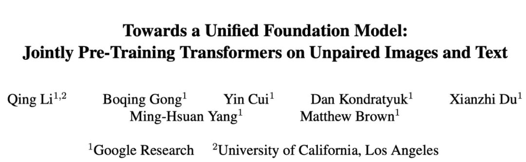 本文分享论文 『Towards a Unified Foundation Model: Jointly Pre-Training Transformers on Unpaired Images and Text』 ,由谷歌 & UCLA 联合提出统一的基础模型,是一个既能做 CV 任务,也能做 NLP 任务的 Transformer 模型!