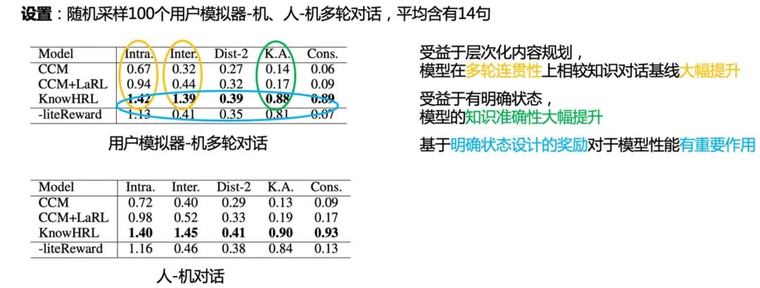通过两个子任务的划分,以及三层的策略模型,KnowHRL在对话过程中获得可解释的离散对话状态,模型得以主动规划对话内容,进而提升连贯性。