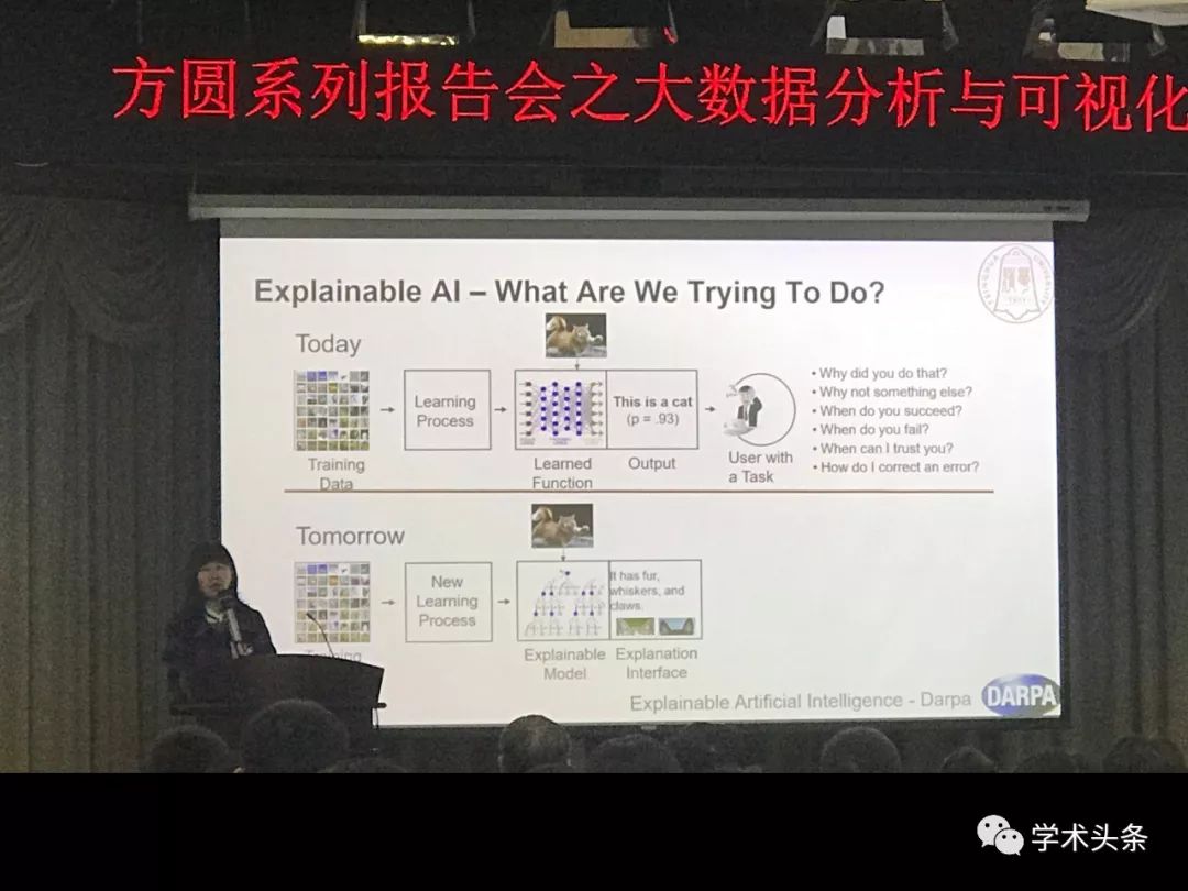 刘世霞老师在本次报告中给我们讲述了机器学习模型可视化分析框架。该框架跳出传统可视分析“先分析再可视化”的单一方向分析机制,将机器学习方法和交互可视化方法有机地结合在一起,从而更好地帮助用户理解复杂模型及其输出结果,分析、诊断并不断完善机器学习模型。为用户选择、利用及改进机器学习模型提供技术依据。