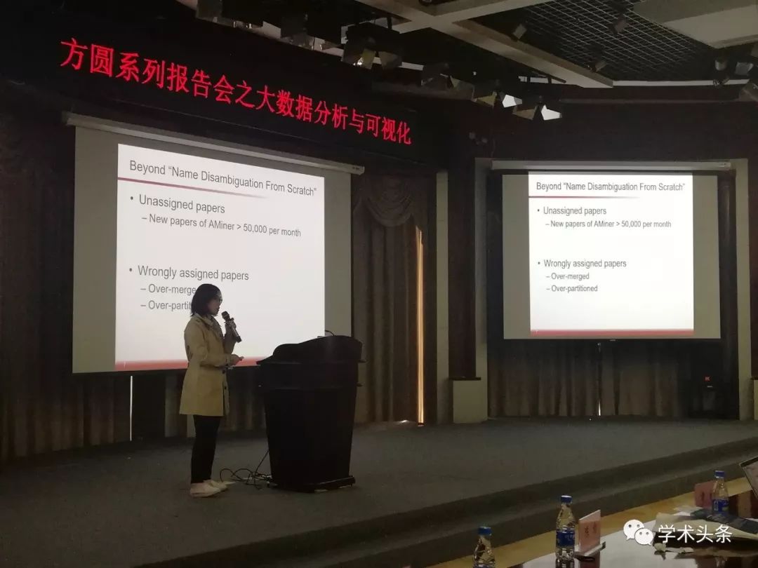 最后,中国人民大学信息学院讲师张静在报告会上做了题为《Revisiting Name Disambiguation》的主题演讲,分享了张老师及团队最新的研究成果。