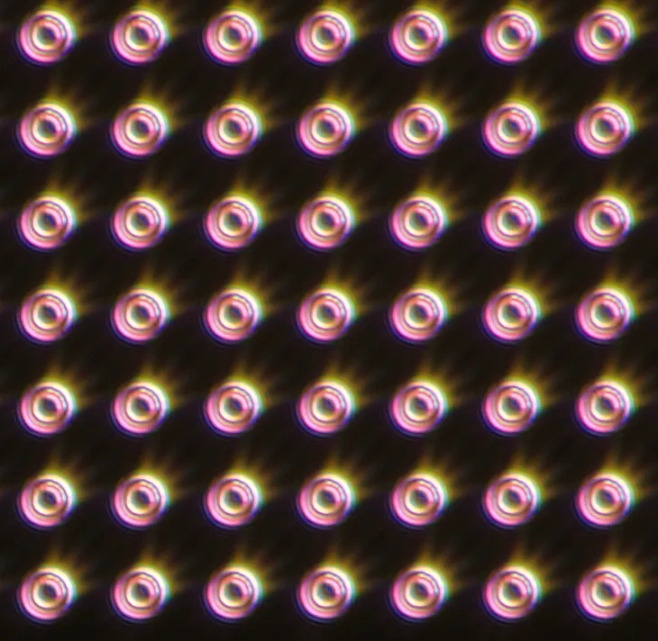 研究者在商业行业标准的绝缘硅片集成光子芯片上打印了 15 万个被称为「微型圆盘」(micropucks)的点。