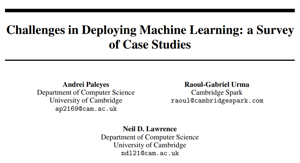 用例研究型论文:这类论文提供单个机器学习部署项目的经过,通常会深入讨论作者面临的每个挑战以及克服方式。