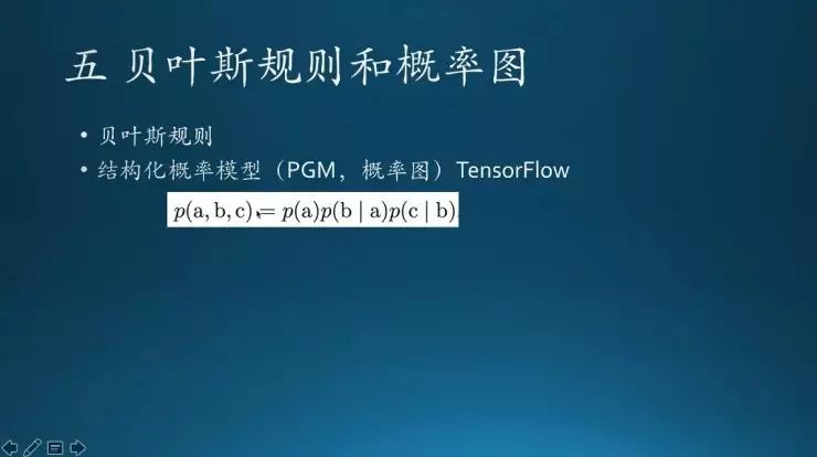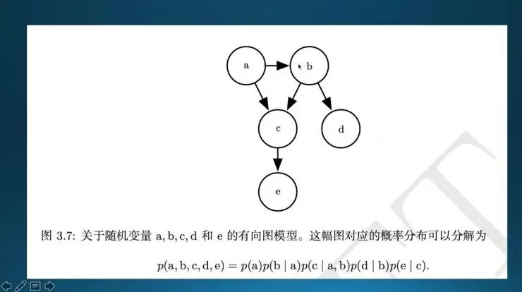 由条件概率引申出来的贝叶斯规则。像这个a、b、c的联合分布可以表示成这样,然后它可以对应一个图,概率图。像这样。