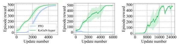 同时,我们设计了知识精化模块(Refine Module)对次优先验进行修正。我们提出的知识引导策略网络能够与现有的基于策略的强化学习算法结合,进行端到端的训练。实验结果显示,我们的方法在离散和连续动作空间任务中均能够提高智能体的学习效率: